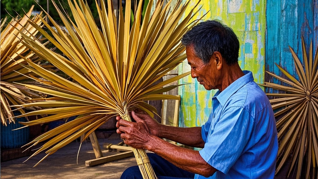 你说这草编里藏着什么智慧?大概是老辈人懂得向自然借力,一片叶子,晒、蒸、编、染,每个步骤都顺着它的性子来;是手艺人把岁月熬成耐心,五十年如一日,让粗糙的叶条变成温柔的容器;更是文化的韧性,旧手艺在新手里开新花,像蒲葵树,风再大,叶子弯了又直,根却扎得更深。